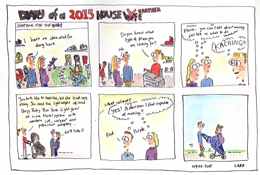 For anyone who wants specific details- we were overwhelmed by the choice in Orchestra (a giant baby shop out in the ‘burbs of Brussels, where yes they do actually have a cobbled path and fake grass to test out the prams out on) and were instructed by the highly efficient German saleslady to buy a Quinny Buzz travel system. Won’t know if this was a good idea or not until the baby actually arrives, but so far we have managed to get it out of the box, assembled and folded down with only a minor domestic, which bodes well I think.