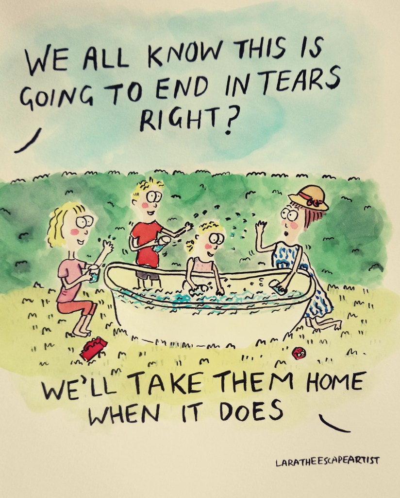 As part of my cartoon course I’ve been experimenting with using ink and a paint brush instead of the usual pen and ink +watercolours. The colours are super vivid which I really like and I have to be a bit looser with my style because I have less control of the paint brush.