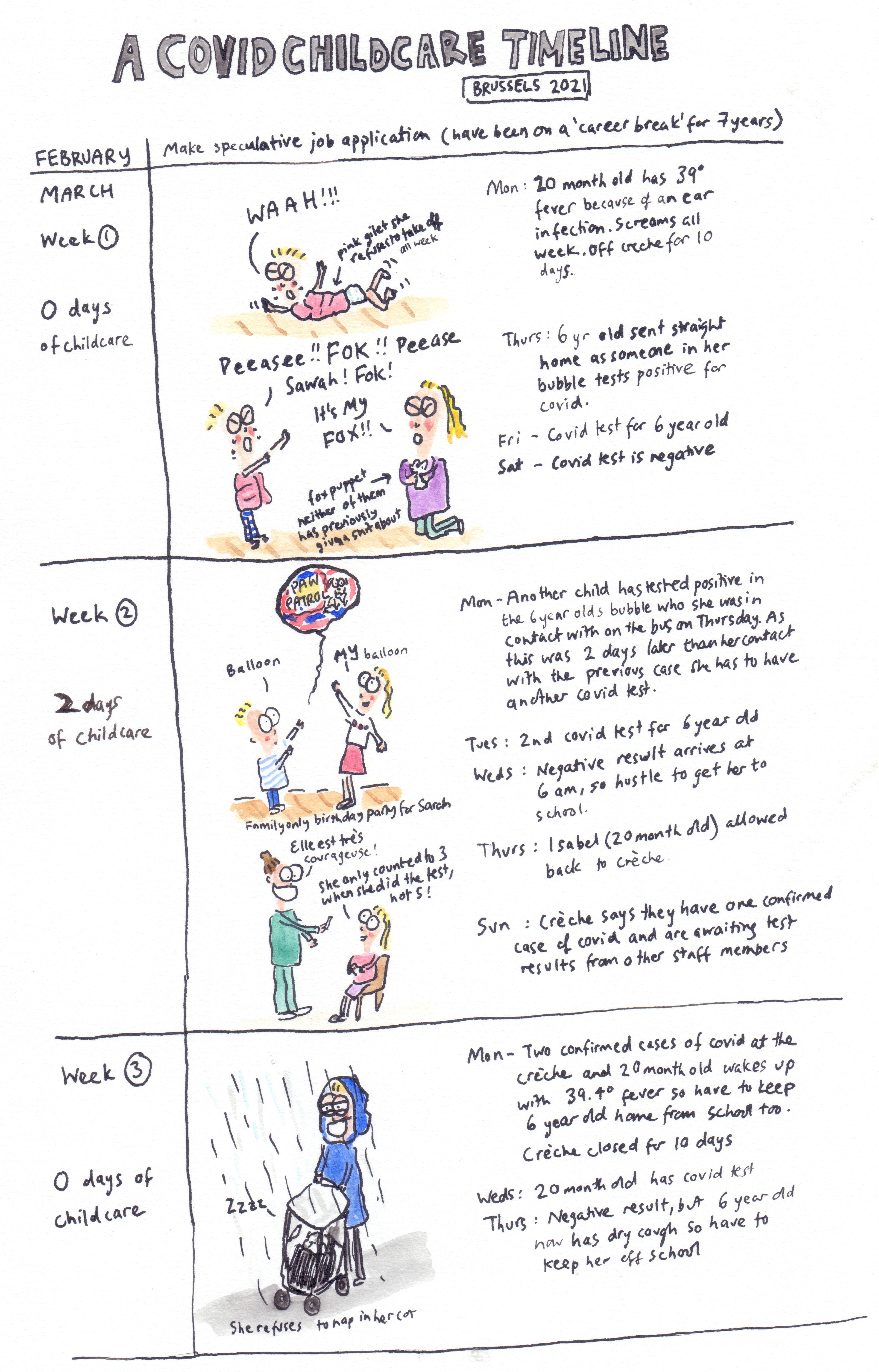 We live in Brussels and have two daughters, one who is 6 and in her last year of ‘maternelle’ or nursery school, and one is now 2 who is normally at creche (daycare) 4 days a week.