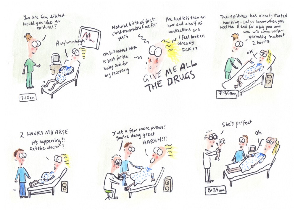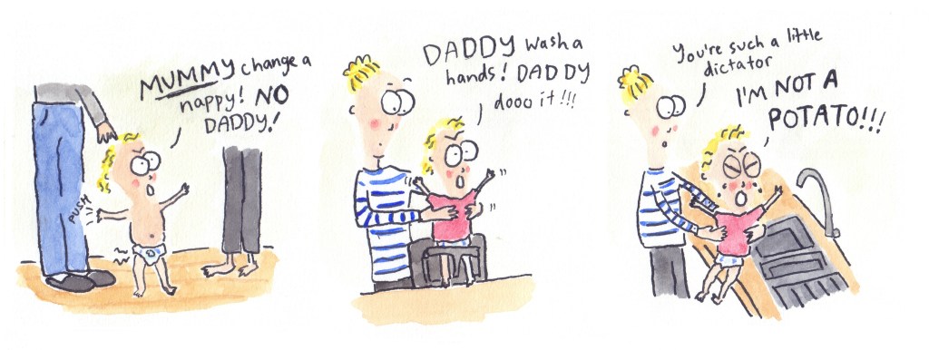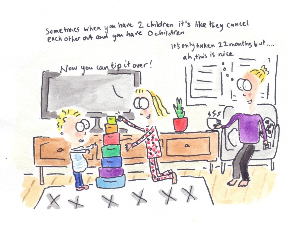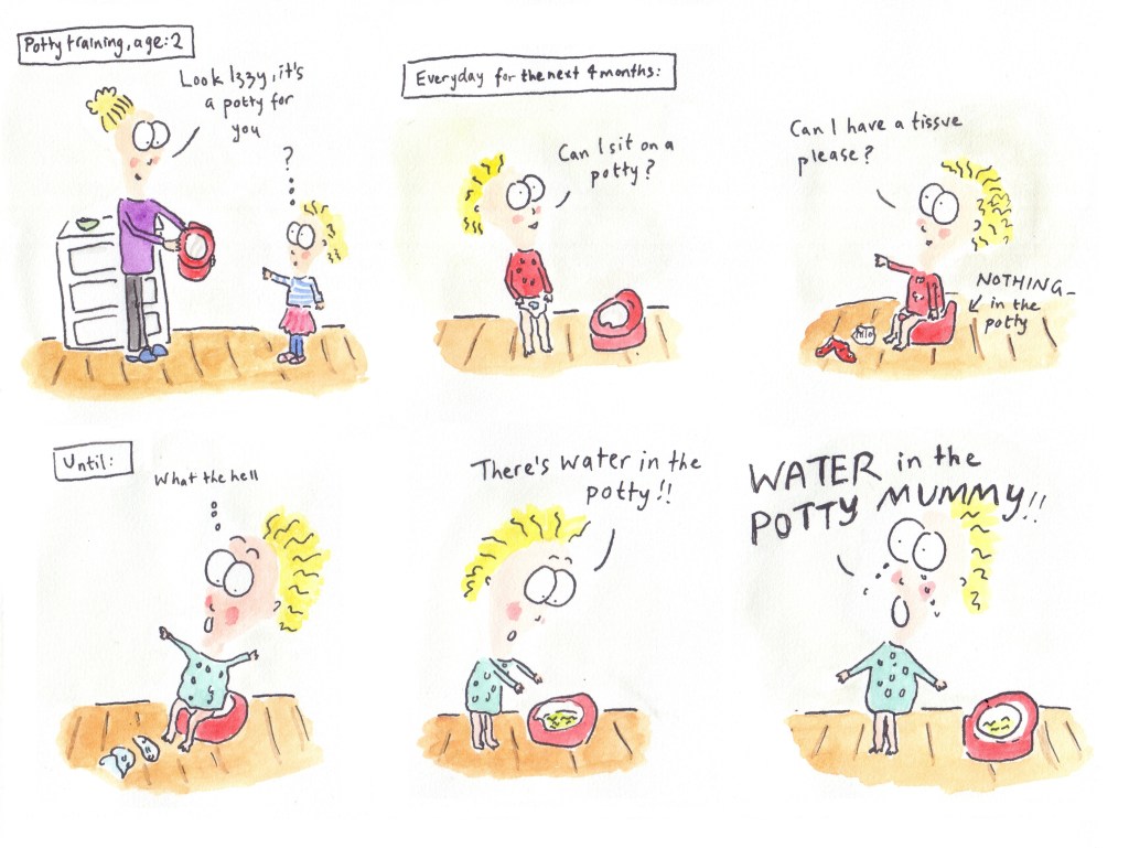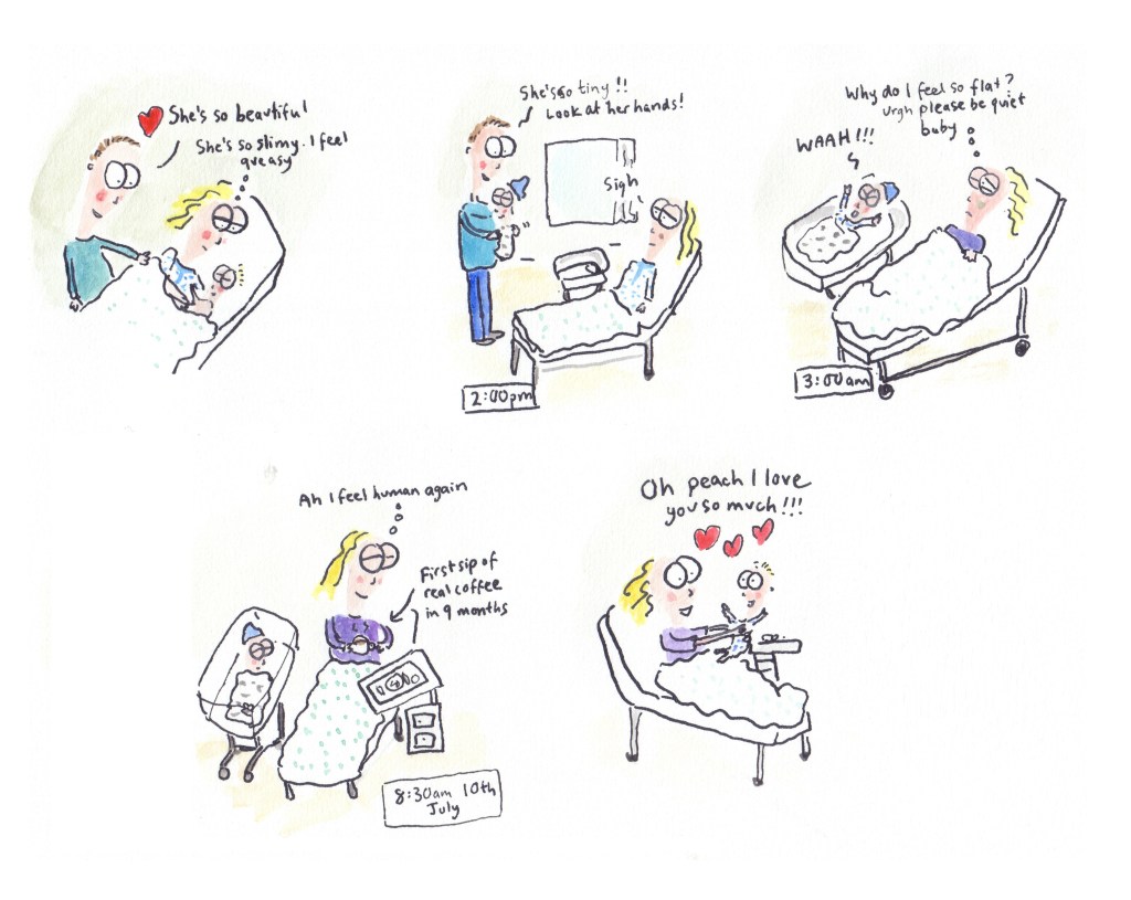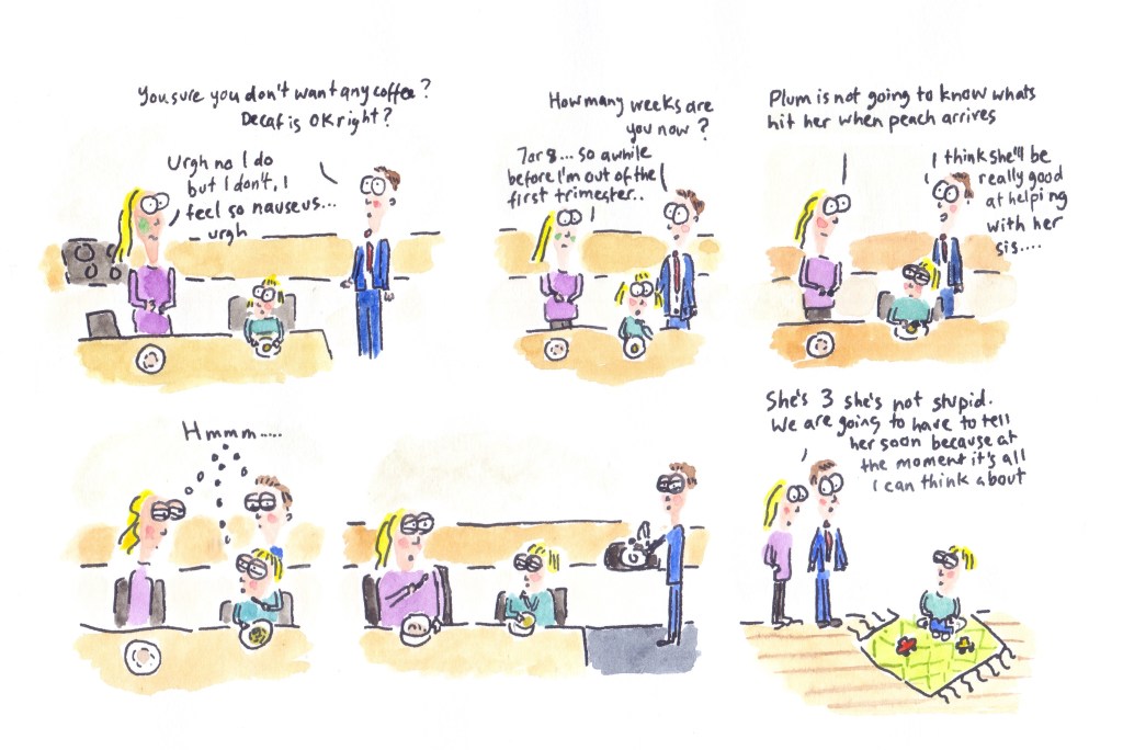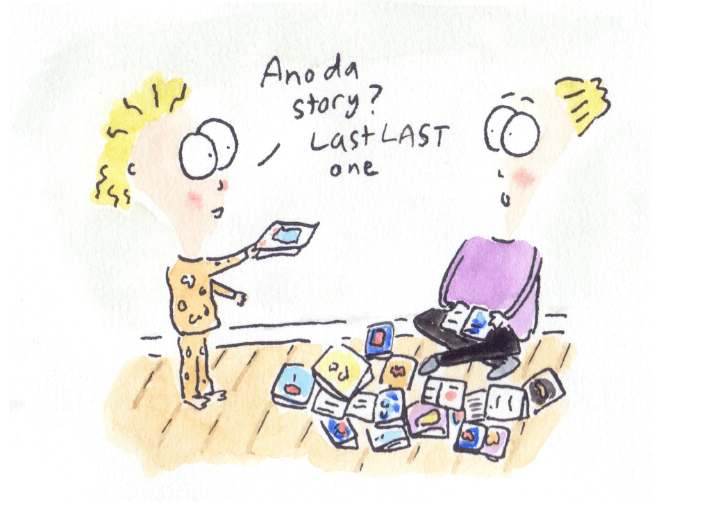 I recently put together all the cartoons I’ve done featuring my second child (her nickname is Peach) and had them printed out as a book on smartphotos.be. I tried reading it to her, but she doesn’t yet seem to like it!