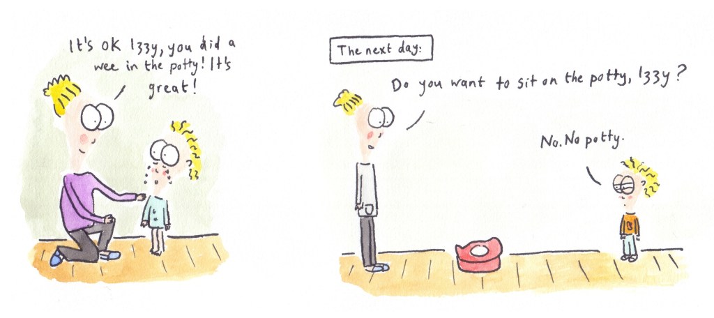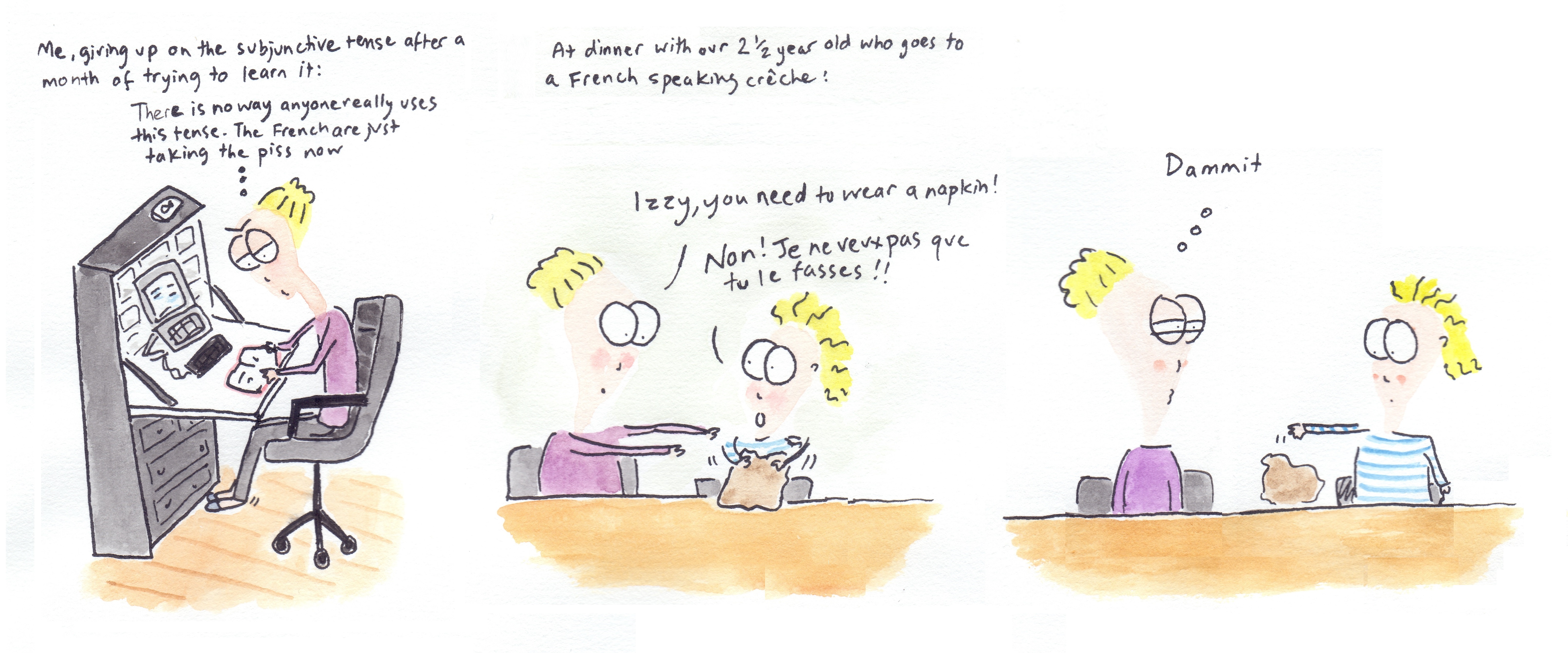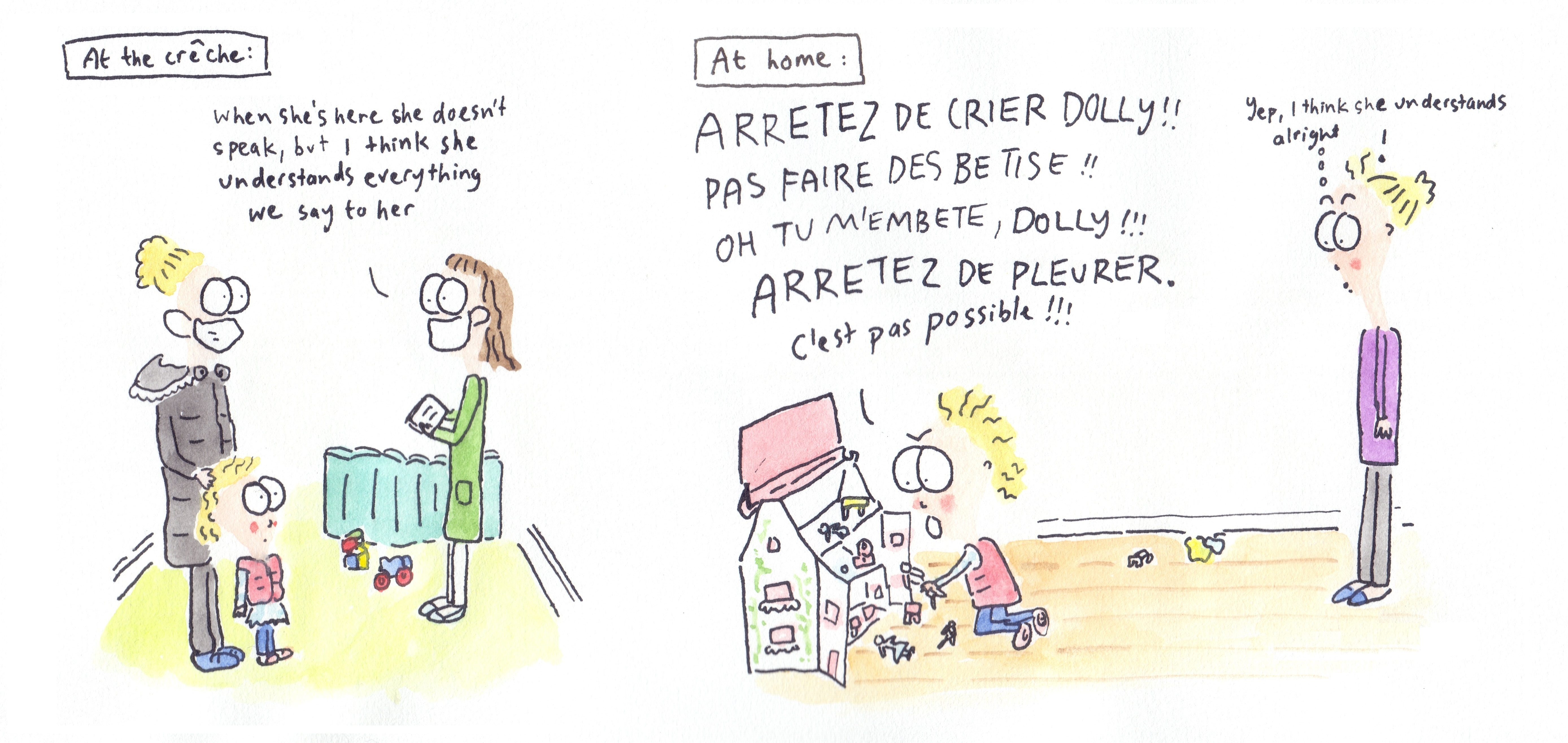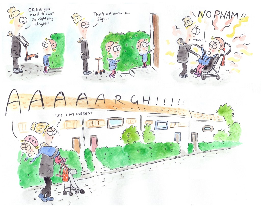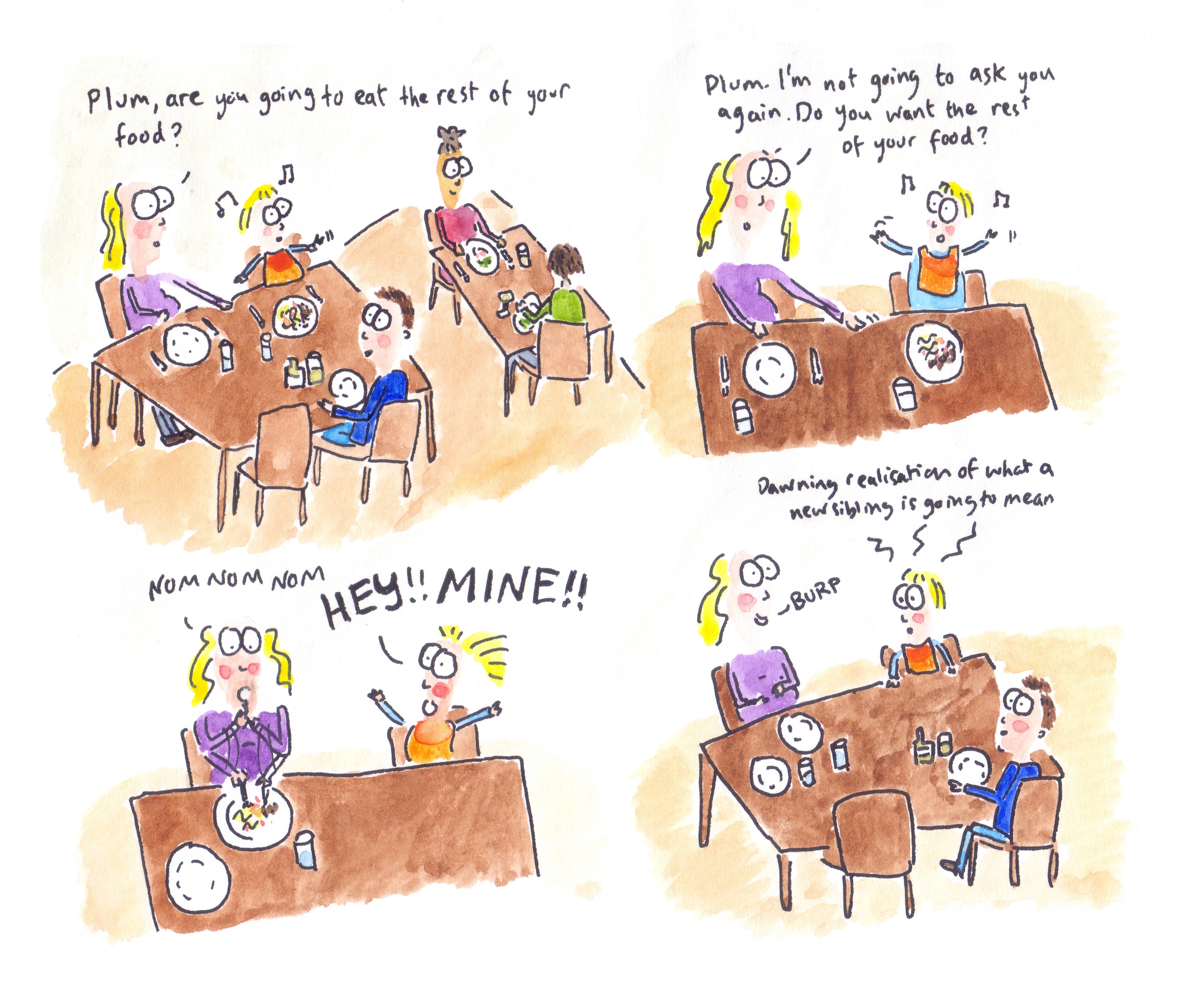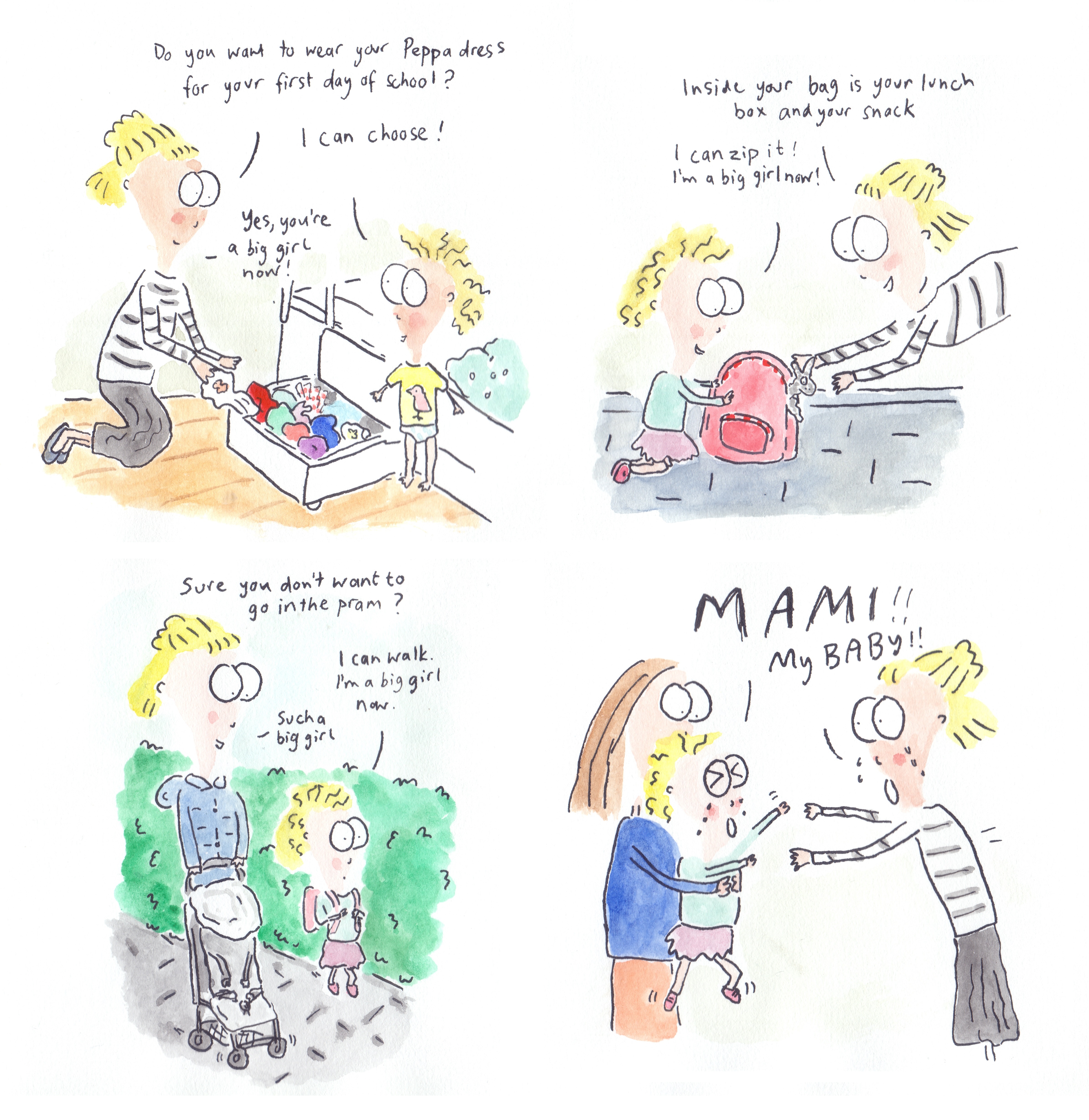 I recently put together all the cartoons I’ve done featuring my second child (her nickname is Peach) and had them printed out as a book on smartphotos.be. I tried reading it to her, but she doesn’t yet seem to like it!