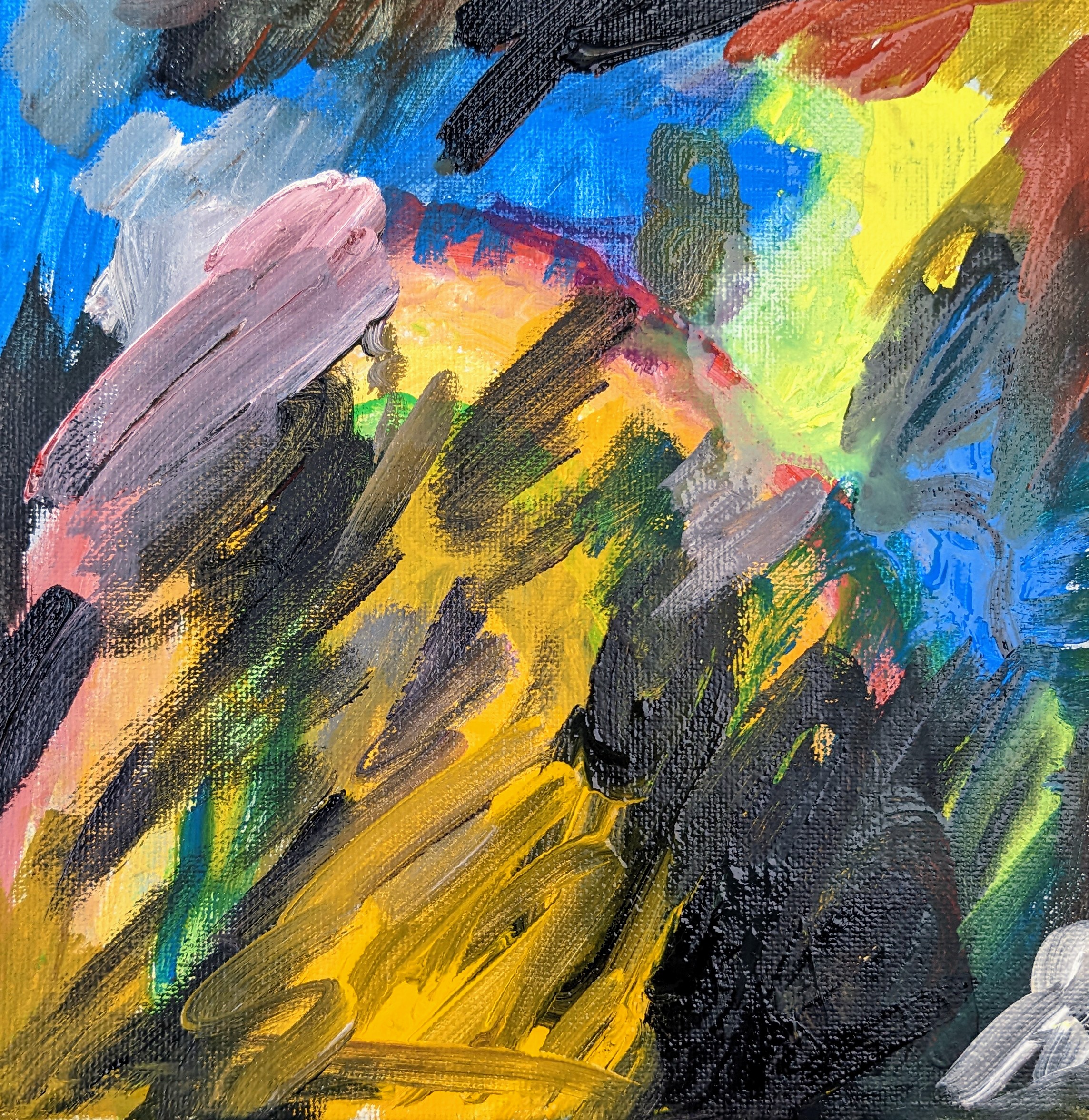Isabel and I spent a happy afternoon last weekend in the garage messing around with acrylics.., all the paintings are mainly her doing, I just added some of the left-over paint as a final touch up!