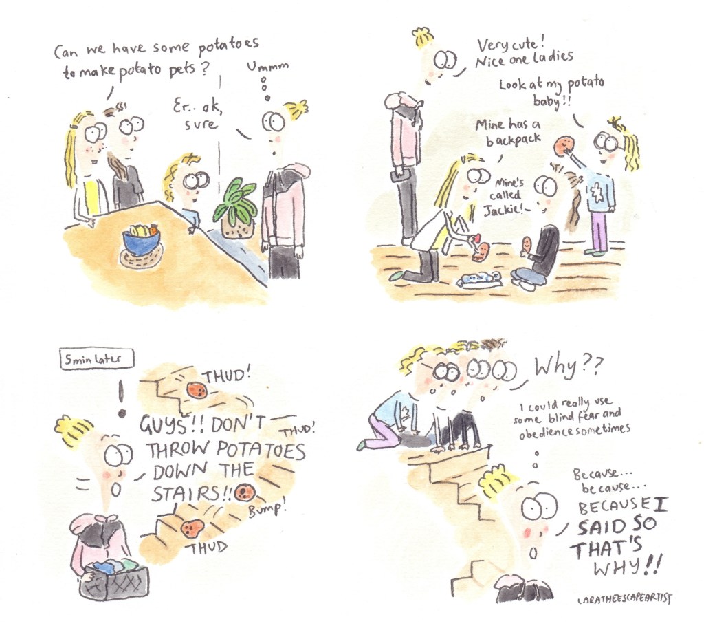 I thought ‘Don’t throw root vegetables’ was one of those unwritten societal rules that I would never need to say to my children, but apparently not.