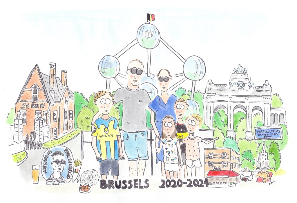 I recently finished a commission for a friend who wanted a leaving gift for another of their friends who is soon to be leaving Brussels. She wanted me to fit their favourite Brussels hangouts and memories of their Brussels life into the cartoon.