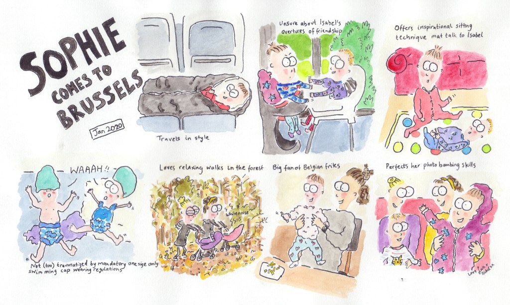 Four years after Sophie first came to visit she came back to see us again! It was really nice to see Sophie and Isabel together again- they are only 5 days apart in age and they get on really well. We managed to pack in quite a few things on their 2 and half day trip (Sports City swimming pool visit/Rouge Cloitre hike/ Africa museum trip and a bike tour) and even though the weather was not super cooperative Elly and I still got to watch the sunset from SOKO rooftop bar!