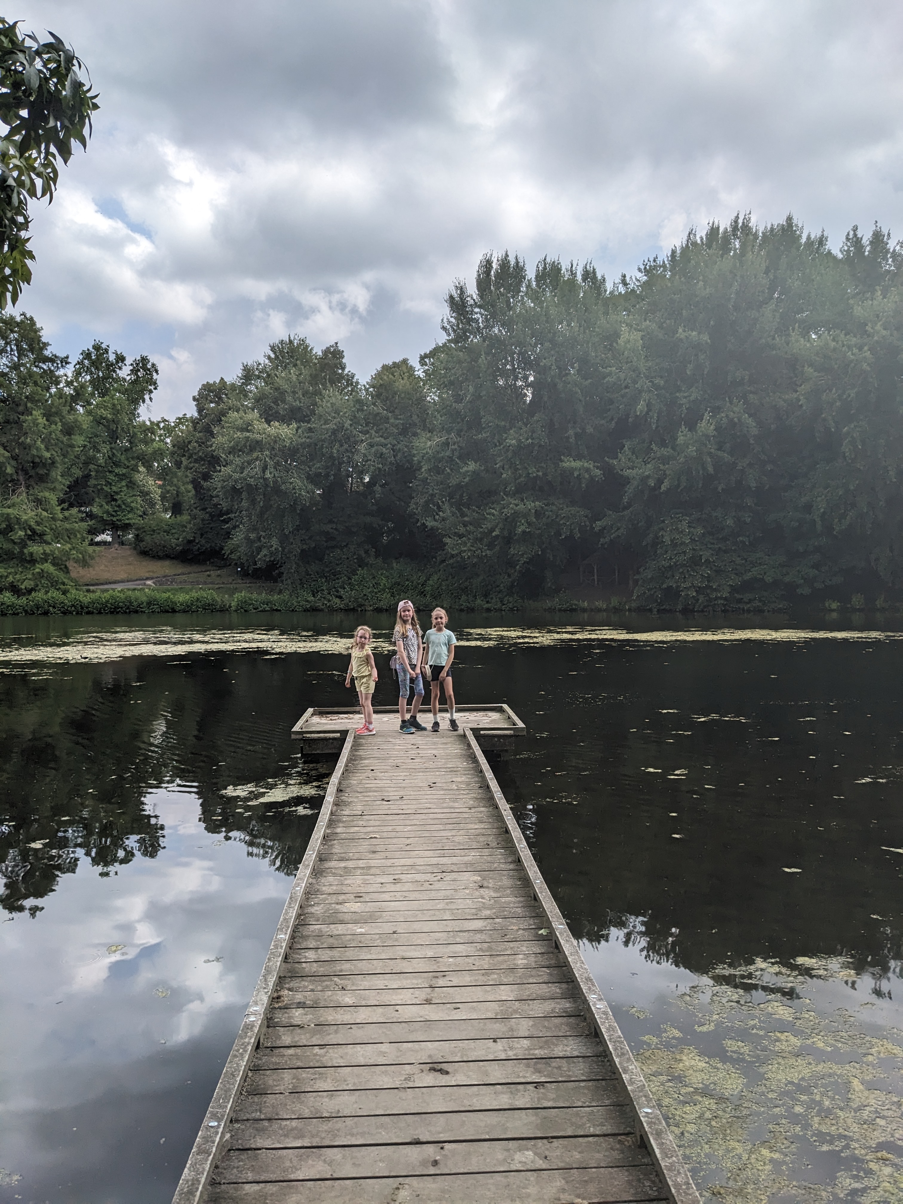 We didn’t go far while they were here- a tour of the local playgrounds on day one and then a trip in opposite directions on tram 8 and walk back home through the forest and along the Woluwe river on the other two days.