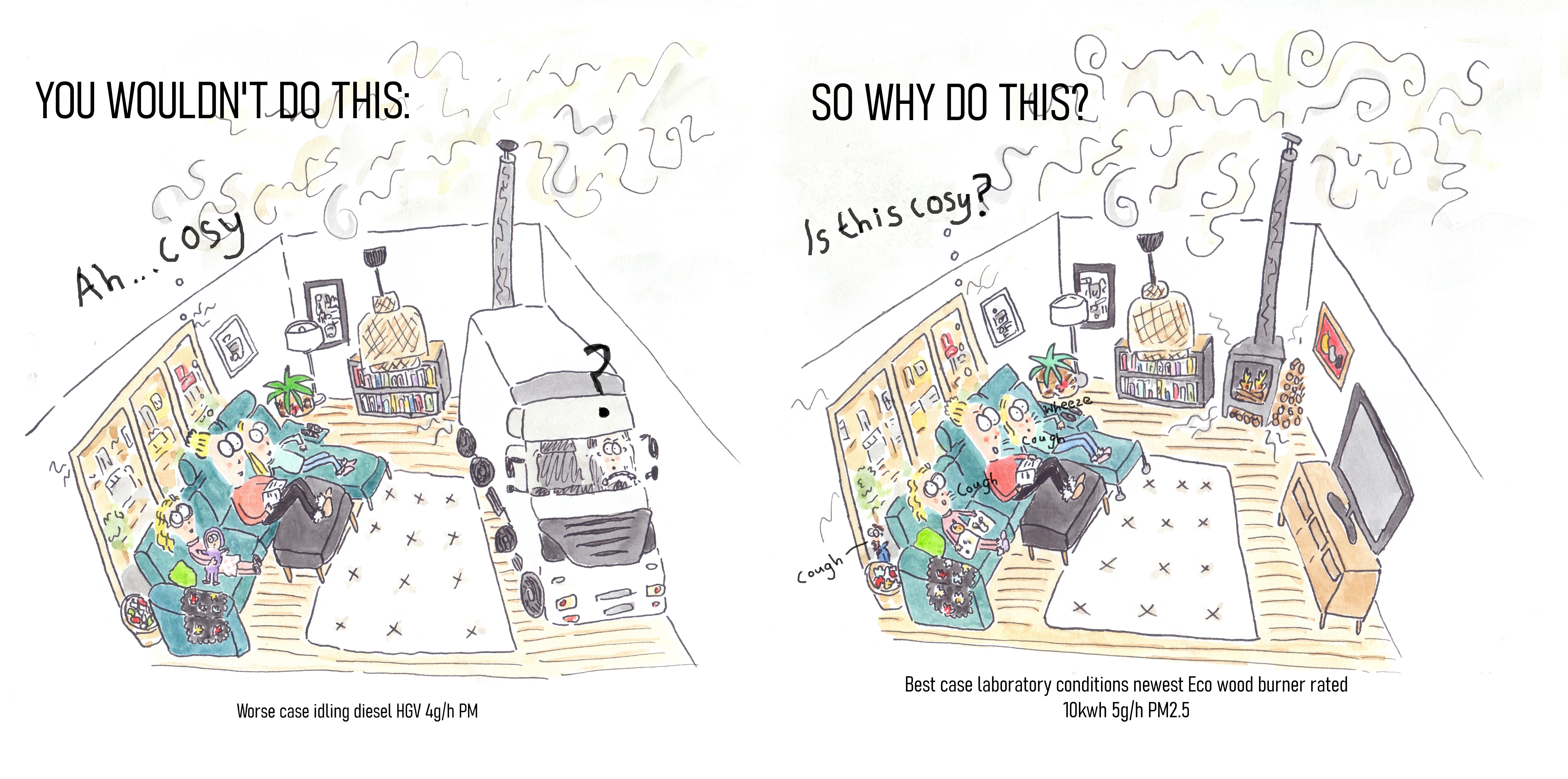 Wood-fire burners are terrible in terms of the amount of air pollution and subsequent health problems that they cause because of the sheer amount of fine particulate matter (PM) that they create: