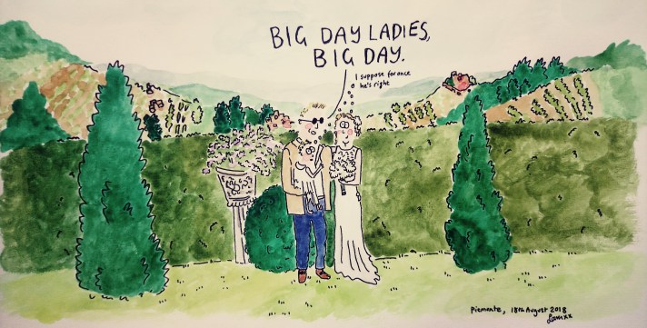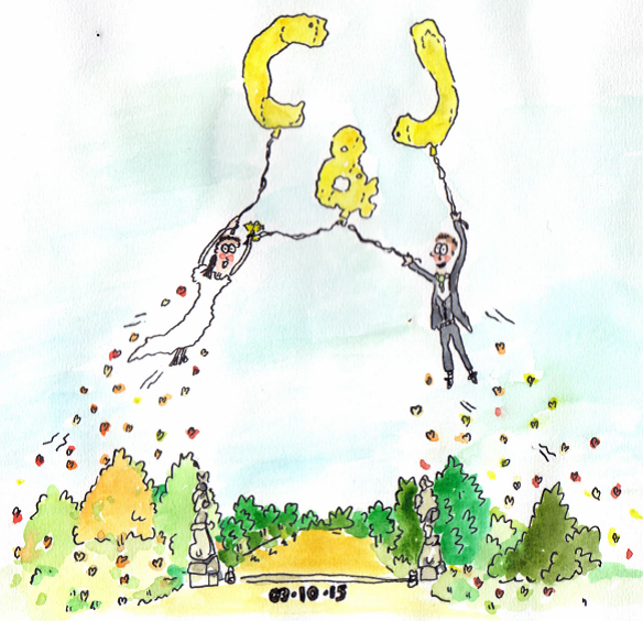 Upon request I can do ink and watercolour cartoons which make great personalized gifts or cards. Please email me: lescapeartiste@gmail.com with your request and any source photos.