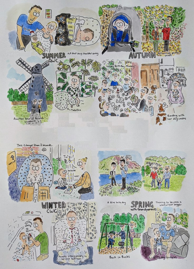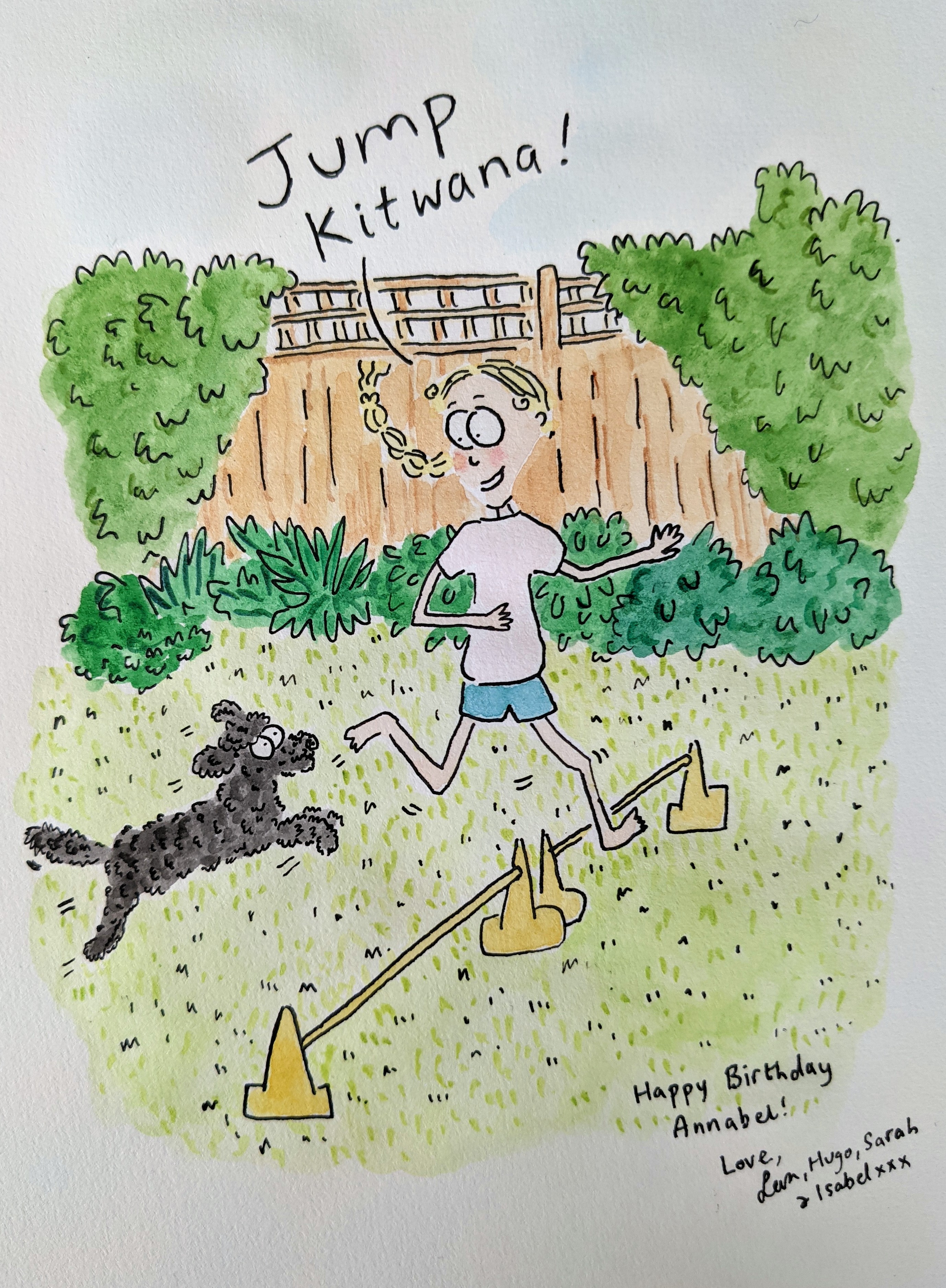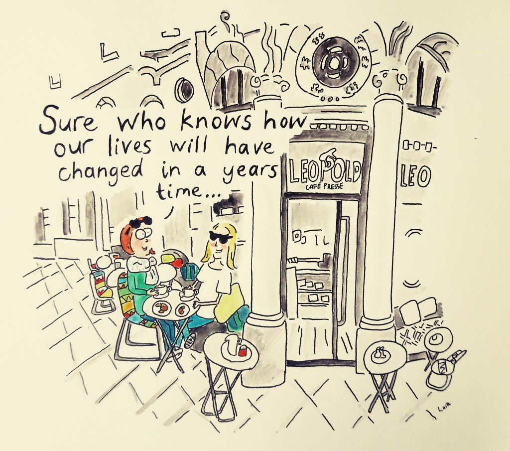 As a general price guide for an approximately A4 sized one image cartoon it’s 55 euros + postage and packaging from Belgium. For a baby’s first birthday gift of up to 13 small images arranged around their name (A3 size) it would be 115 euros +postage and packaging.