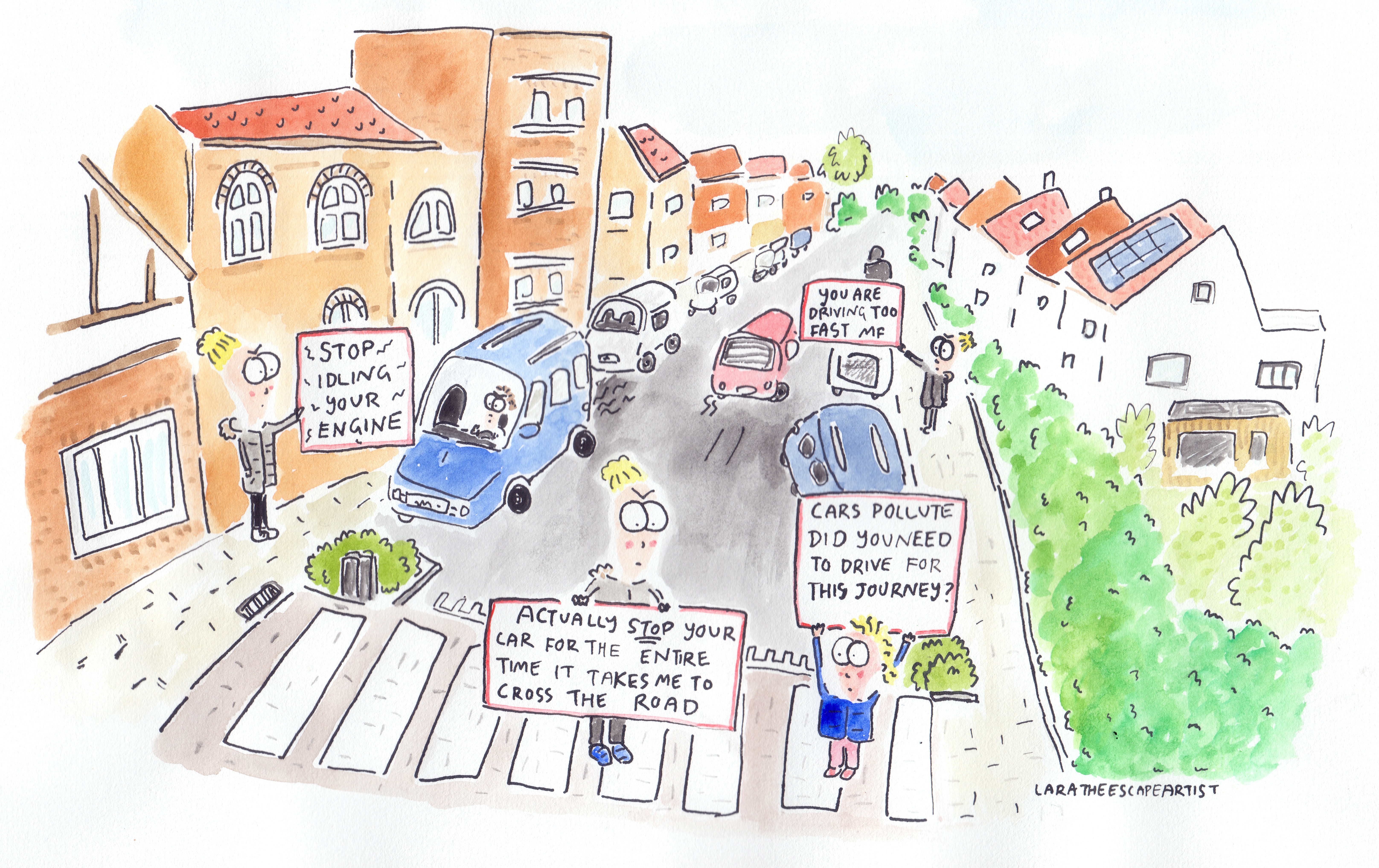 Transport cartoons for Ecolo, the Belgian French speaking green party (English versions):