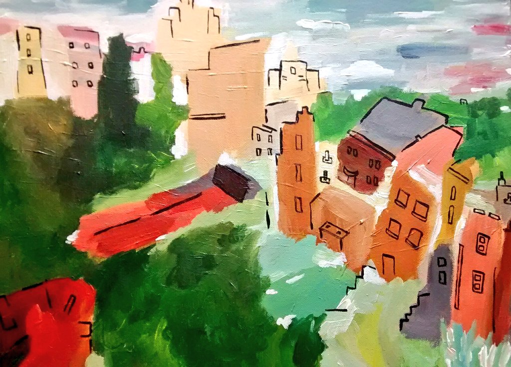 Neighbourhood View, Brussels Size: 40 x30 cm Medium: Acrylics Cost: 120 Euros (Unframed)